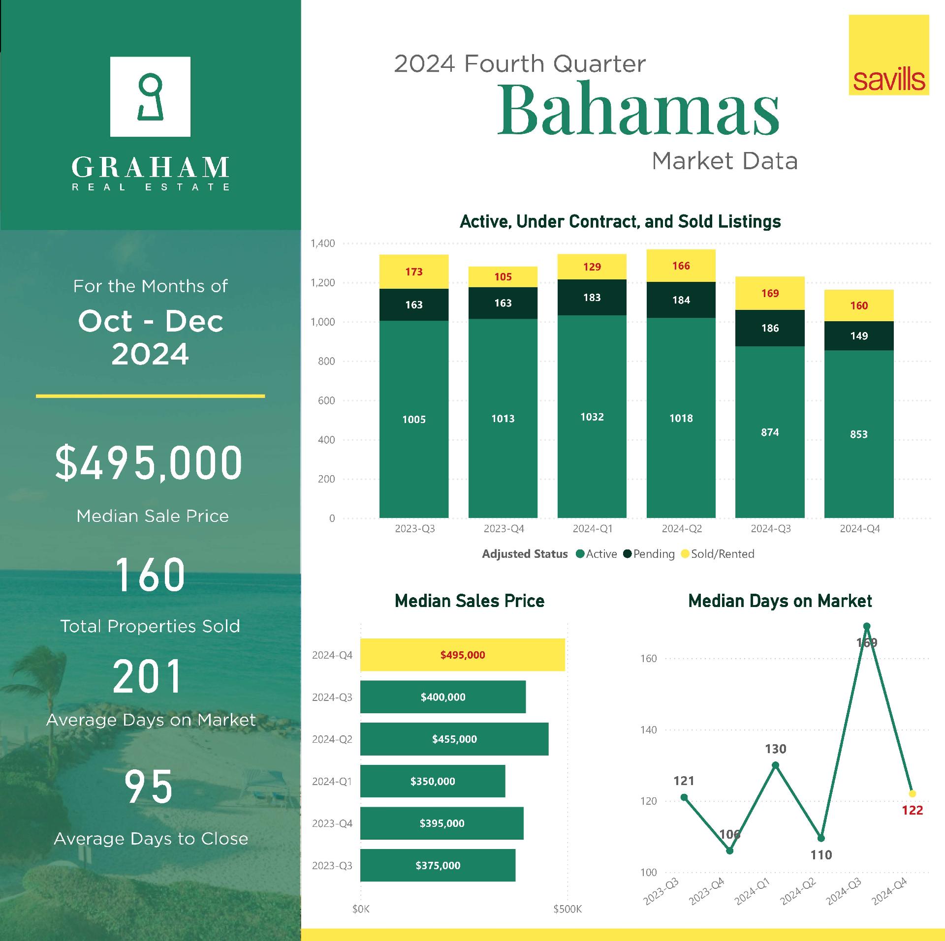 Welcome to the Q4 2024 Bahamas Real Estate Market Report. This comprehensive analysis dives into key metrics and trends shaping the Bahamian real estate market from October through December of 2024, aimed at empowering real estate investors, local homebuyers, and international buyers with actionable insights.